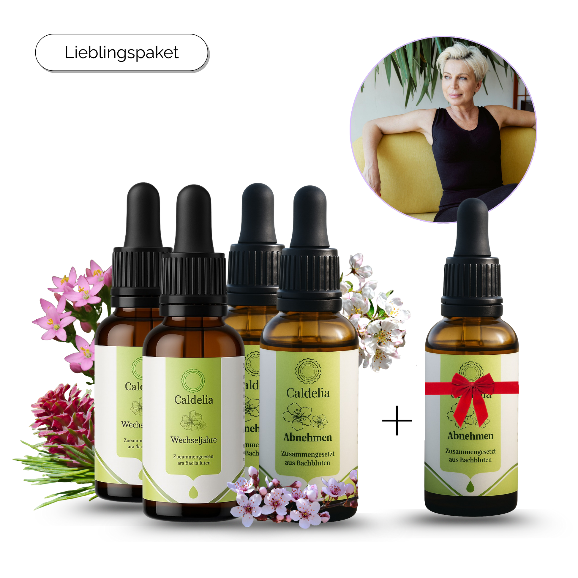 Mit diesem Duo aus zwei Bachblüten-Mischungen gehen Sie diese Lebensphase gelassener an und machen Schritte hin zu einer leichteren Silhouette. Die Hitzewallungen lassen nach, die Nächte werden ruhiger, die Stimmung ausgeglichener; parallel dazu nimmt die Lust auf Süßes ab, der Appetit stabilisiert sich und Sie gewinnen die Kontrolle über Ihr Gewicht zurück. Der Kopf wird klarer, der Körper folgt. Dieses Pack hilft Ihnen, die Veränderungen sanft und ohne Druck anzunehmen.